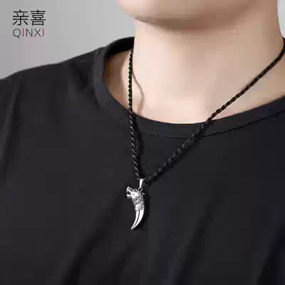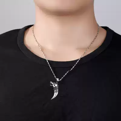 Wolf tooth pendant male sterling silver necklace tide hip-hop style men simple forest pendant to send boyfriend birthday gift