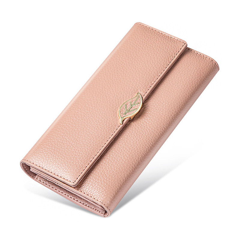 Wallet women's long version simple and versatile atmosphere three-fold 2021 new fashion women's soil leather folding pink lucky