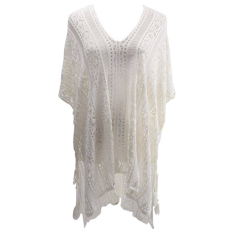 European and American V collar holiday bikini swimsuit hood hollowed-out hook flower beach jacket loose long sleeve head beach dress