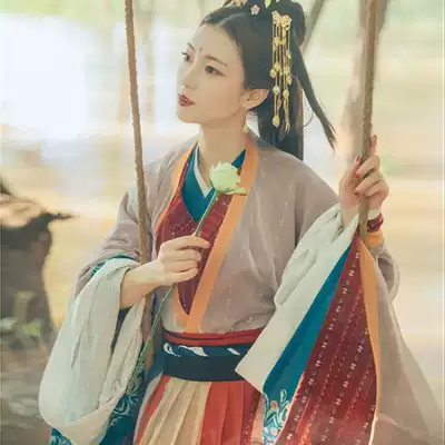 Wei and Jin Dynasties style Hanfu female fairy Chinese style wide-sleeved flowing fairy skirt ancient costume full set collar waist-length skirt suit Spring and Autumn