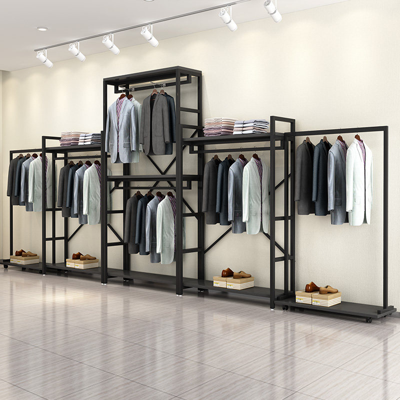 Clothing store display rack Men's and women's clothing store shelves Display cabinets Wrought iron double-layer clothes racks Floor-to-ceiling hangers