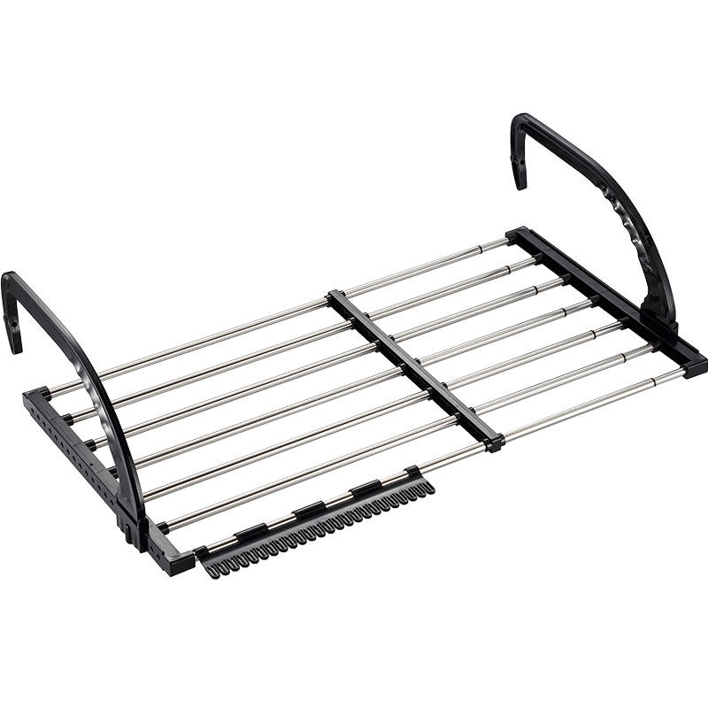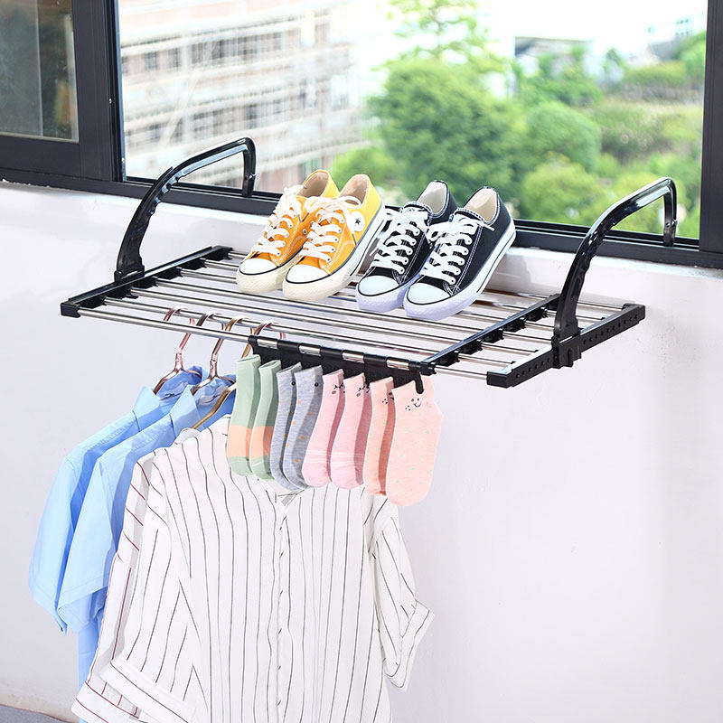 Stainless steel window shoe rack Multi-function window sill anti-theft net drying artifact Folding hanging drying balcony drying rack