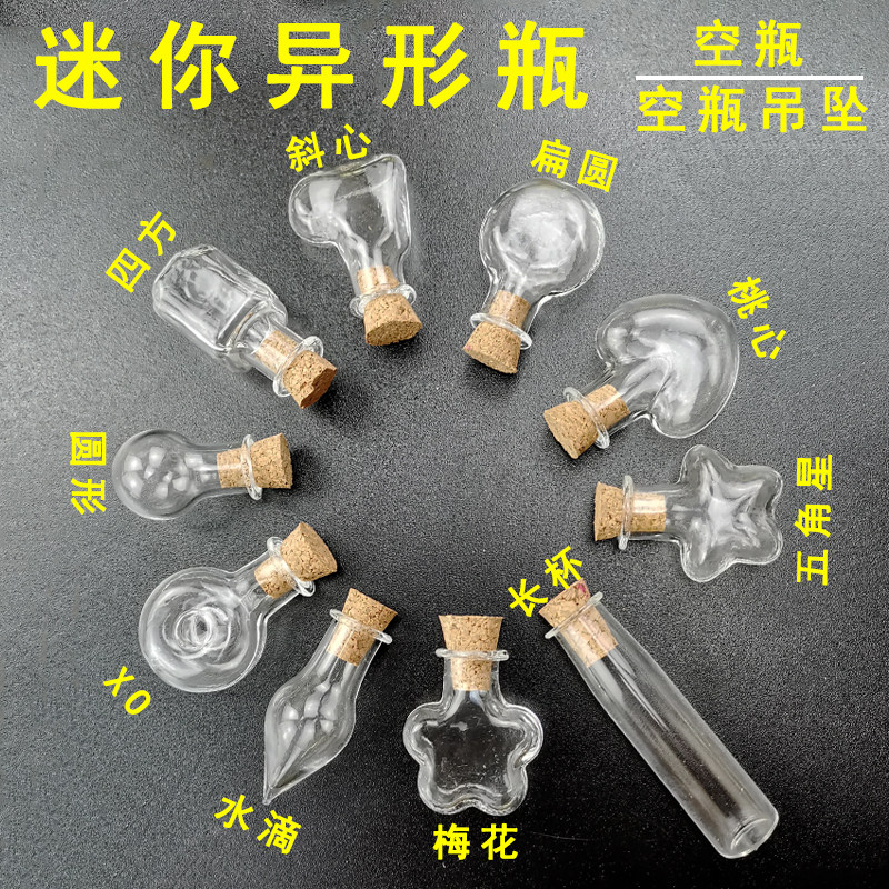 Mini glass bottle transparent small number of wood stopper May Bottle Seal Small Bottle Pendant Glass Bottle Pendant Bottle Necklace Bottle