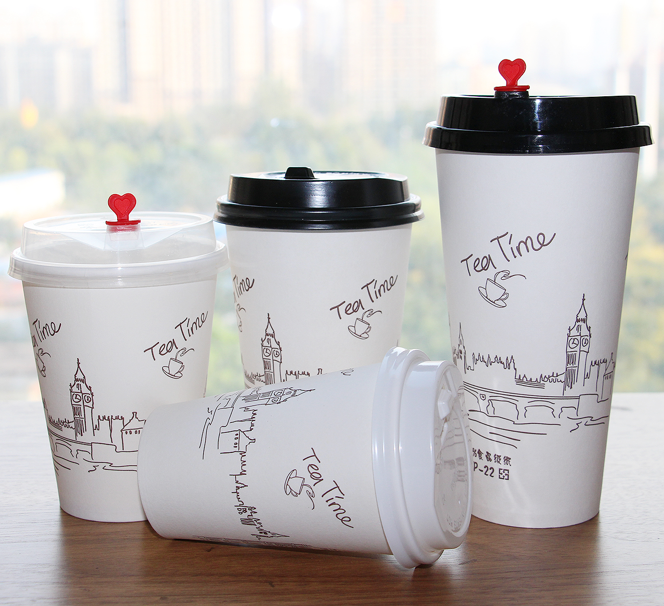 Thickened disposable milk tea cup soy milk coffee paper cup hot and cold drink juice packaging cup with lid 500ml