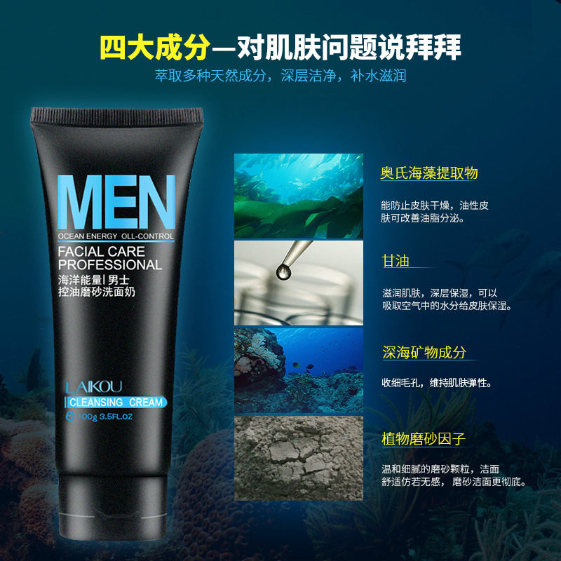 Laicome men's facial cleanser moisturizing oil control shrink pores to blackheads deep cleaning facial cleanser skin care products students