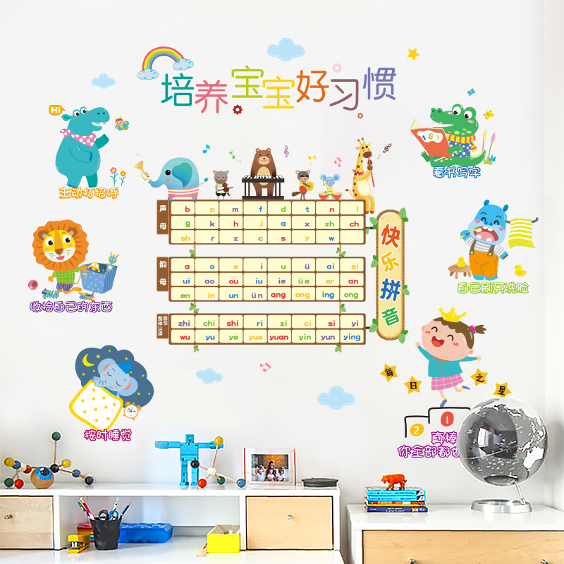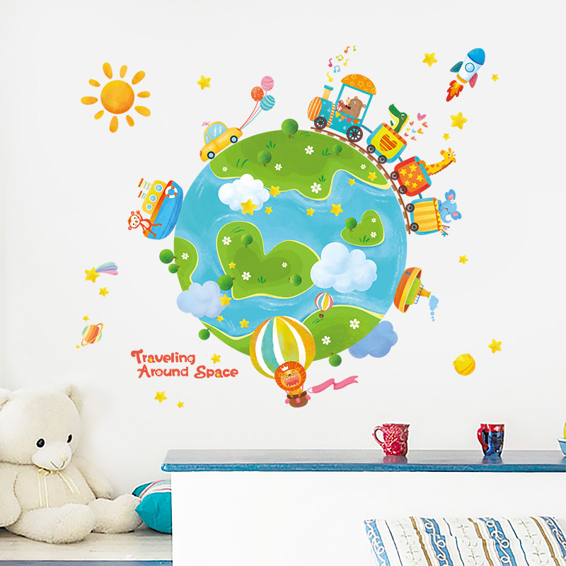 Kindergarten Science Discovery Room Wall Decoration Stickers Early Education Children's Room Stickers Layout Wallpaper Self-adhesive Cartoon