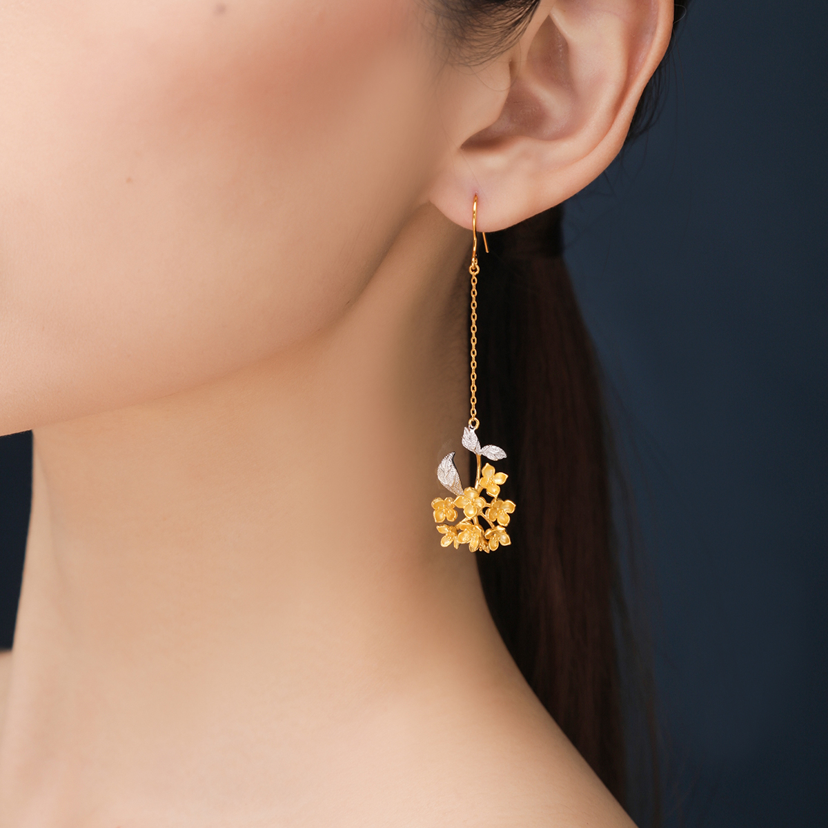HeyJewel Clothesline Golden Gui Series 925 Silver Gilded Osmanthus Long Earrings Ancient Wind Elegance