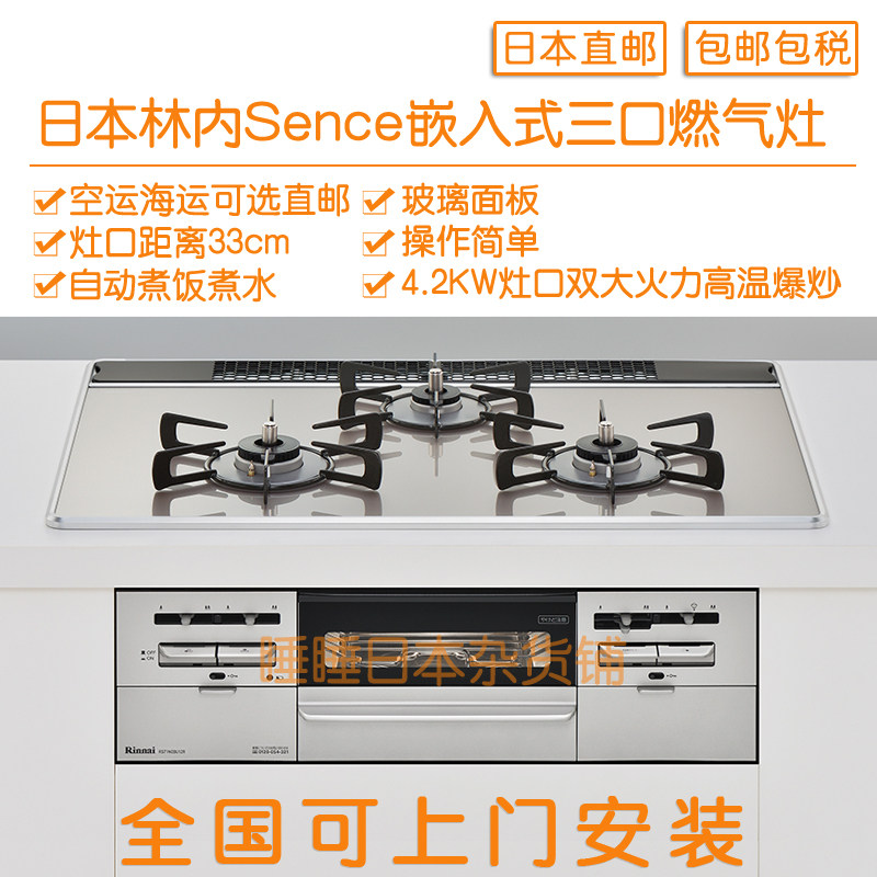 Japan Linen Sence Embedded Three-Mouth Oven Gas Furnace Double Strong Firepower High Temperature Burst Sautlet Glass