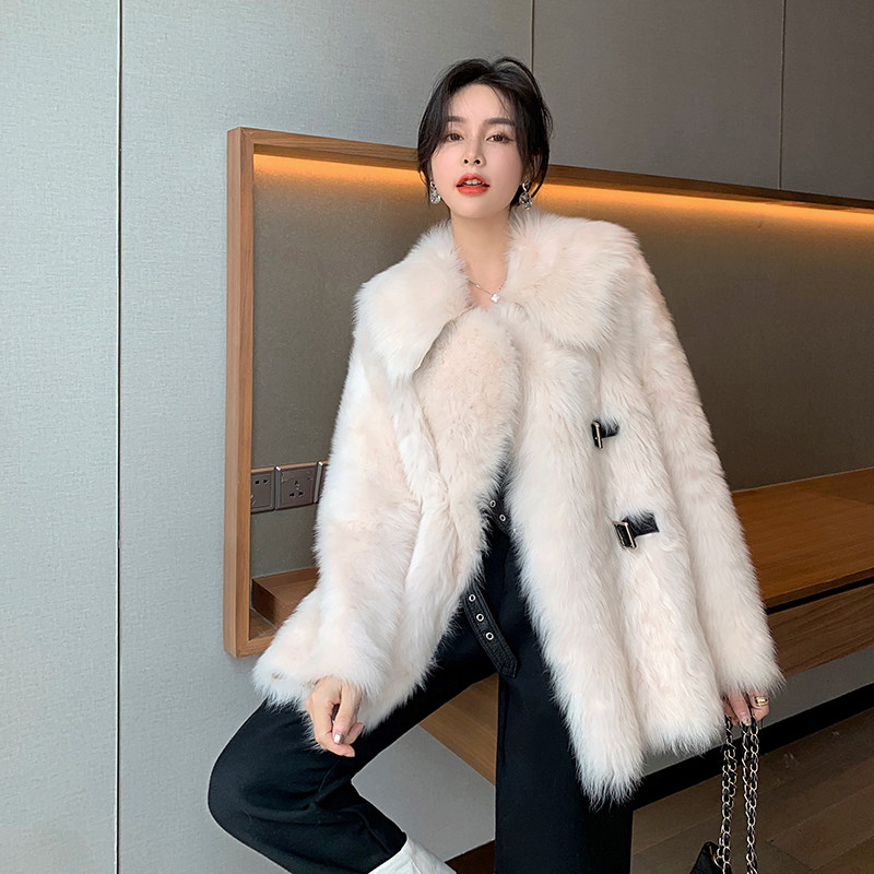 2021 winter new Tuscan real fur coat women's long version Korean version of loose lamb fur