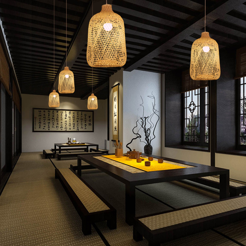Japanese bamboo chandelier Chinese inn corridor aisle Tatami lamp project custom Zen tea room Dining room chandelier
