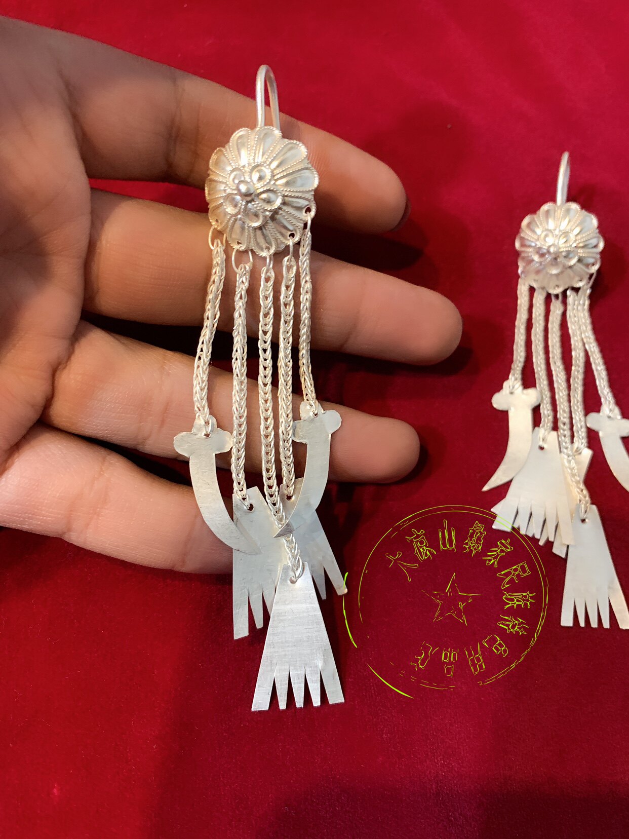 Cool Shan Yi Ethnic Pure Silver Pure Hand Earrings Lady Jewelry National Wind Comeback Pure Silver Hand Earrings Adornment