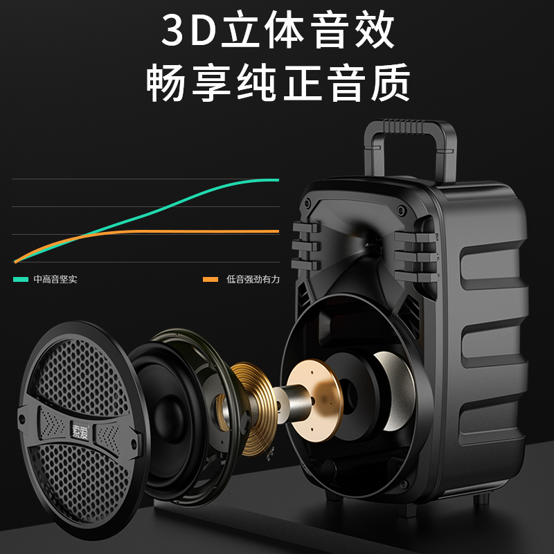 Solove T15 Square Dance Sound Mini outdoor with wireless microphone K Song performance 8 inch portable charge Hand large volume High power heavy low sound cannons Bluetooth dancing Rover speaker