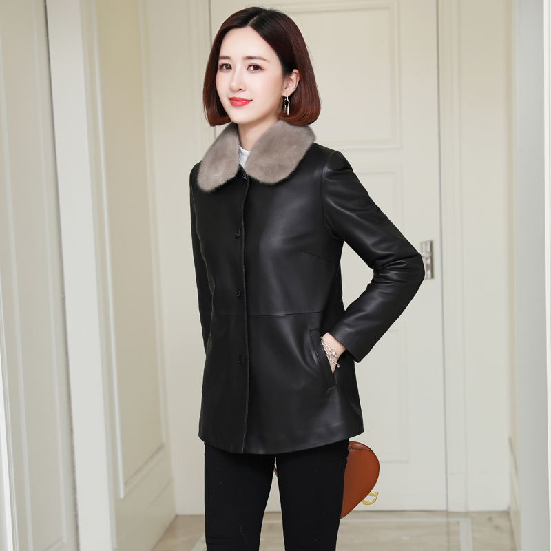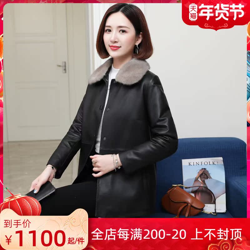 Haining fur coat female short 2022 new sheep skin feather jacket middle and elderly mother packed jacket fur coat