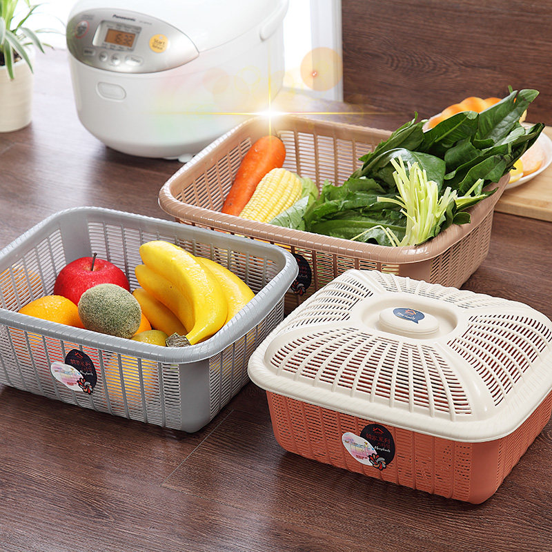 Home square with lid Leaching basket Eggs Basket Kitchen plastic washed vegetables fruits and vegetables Chopsticks Water Filter Basket Clean Blue