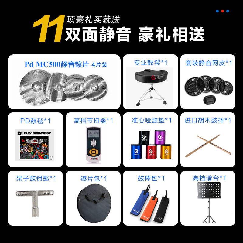 PD Rack Subdrum 333 Double-sided Mute Adults Children Introductory Beginners Jazz Drums 5 Drums 3 Cymbal Teaching Practice Drums