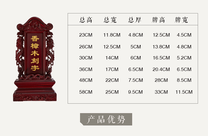 Solid wood ancestral tablet Ancestral hall God tablet Lotus tablet Spirit tablet Temple dedicated to the throne tablet Heaven and Earth King pro-teacher lettering