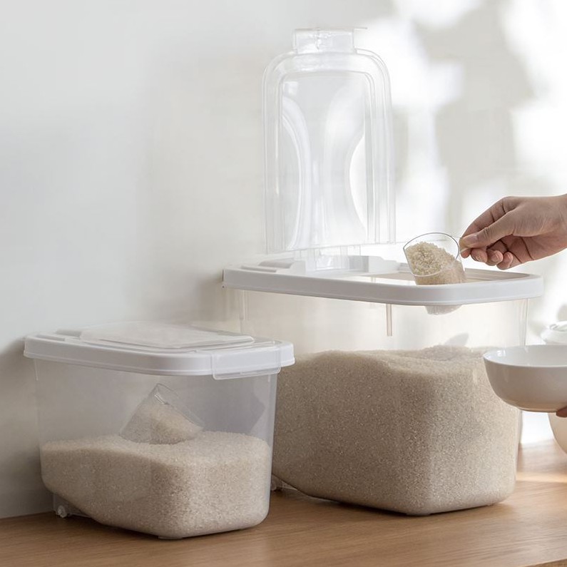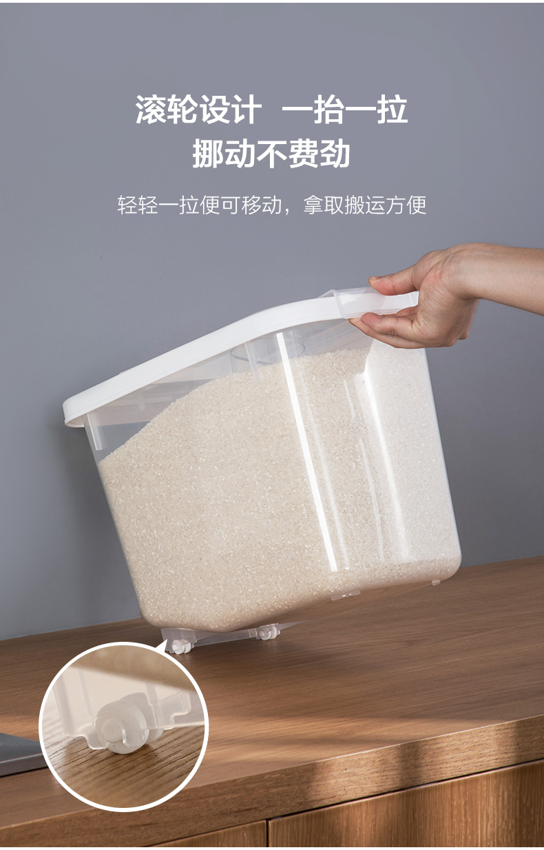Tea Flower Plastic rice barrel 5KG Mina Flip with wheel rice barrel 10KG Household Transparent Moisture Prevention Rice Case