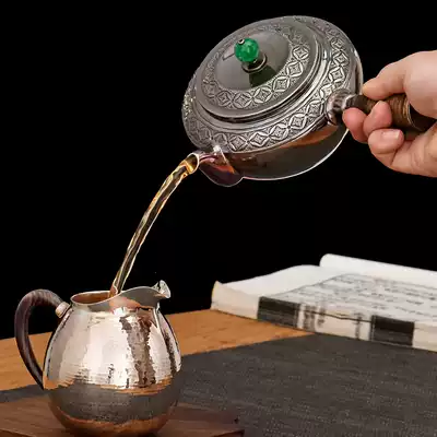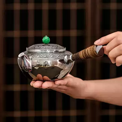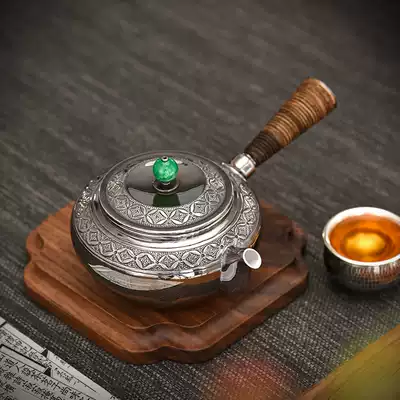 Silver Age Jasper handmade carved side silver pot bubble teapot filter tea sterling silver 999 silver teapot