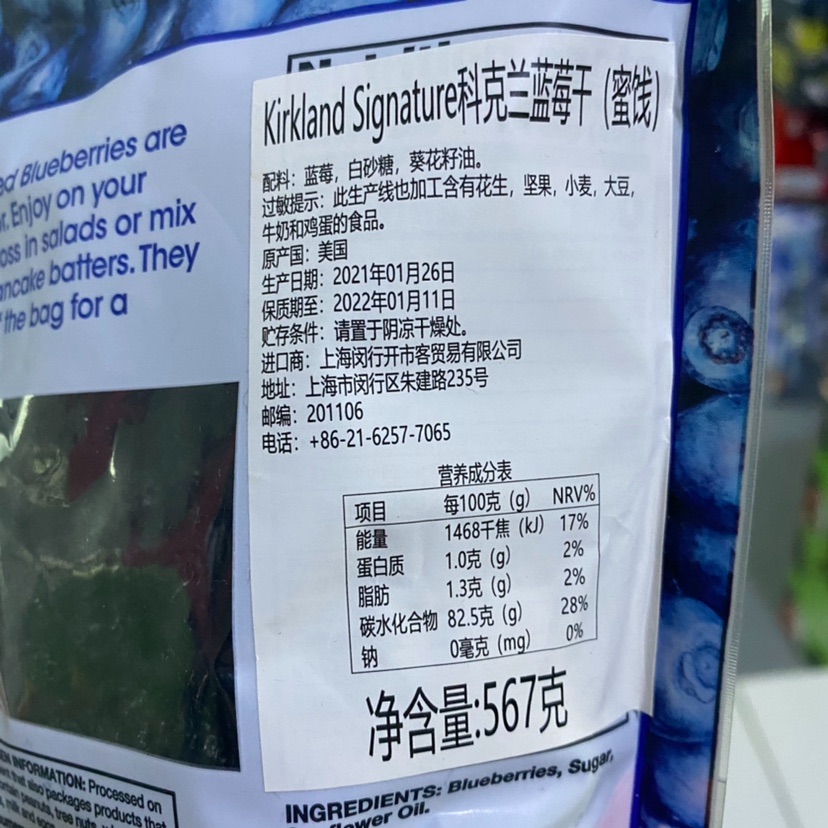 Shanghai costco open city guest US import Kirkland blueberry dried candied fruit 567G fruit dry casual snacks