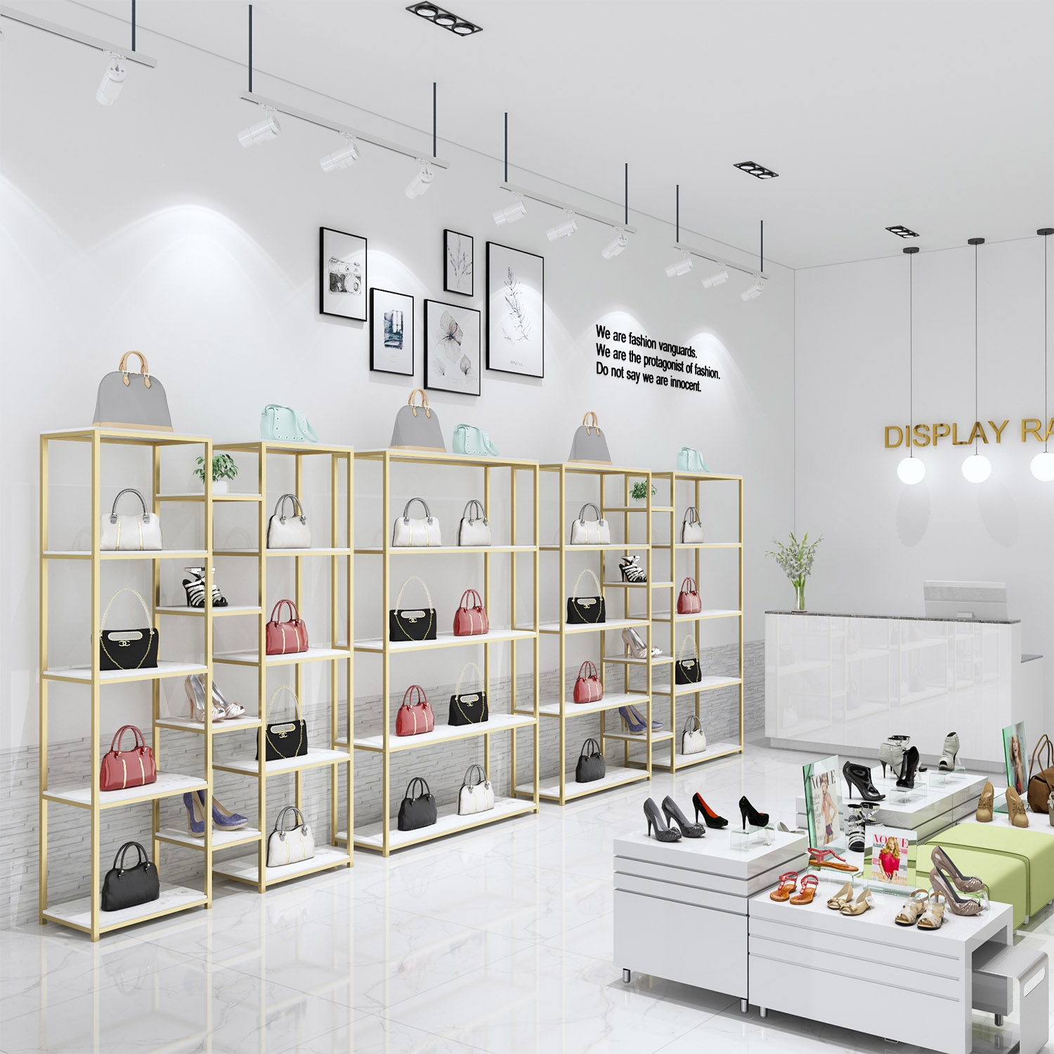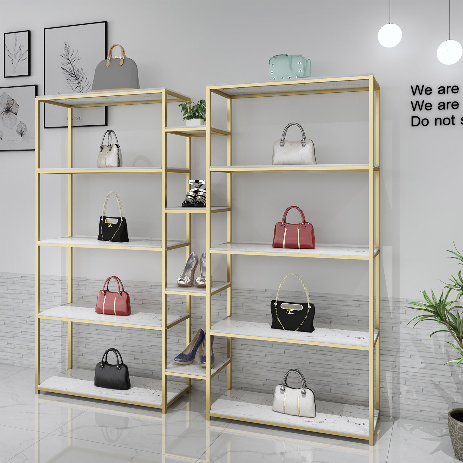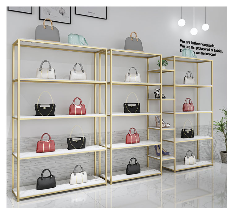 Clothing store display cabinet shelf display rack makeup skin care products golden shelf shoes bag product shelf