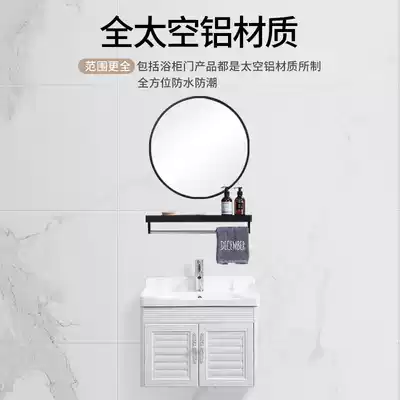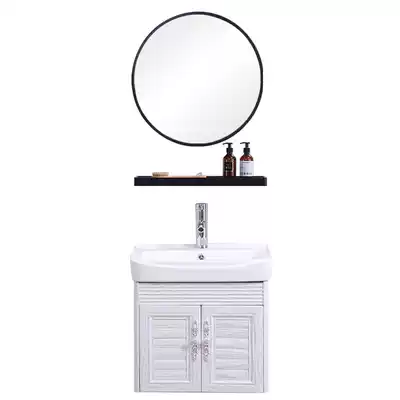 Space aluminum bathroom cabinet round mirror combination powder room small apartment washstand hand washing face basin bath cabinet combination