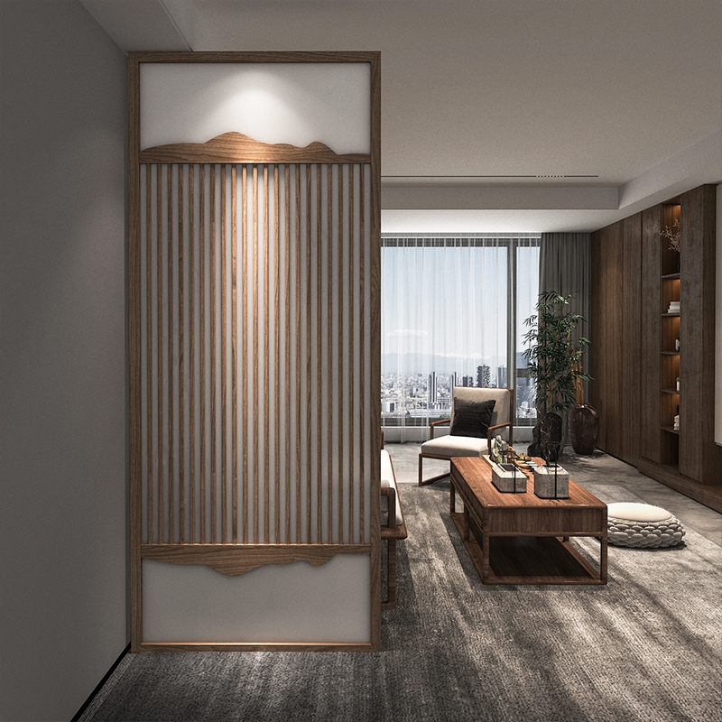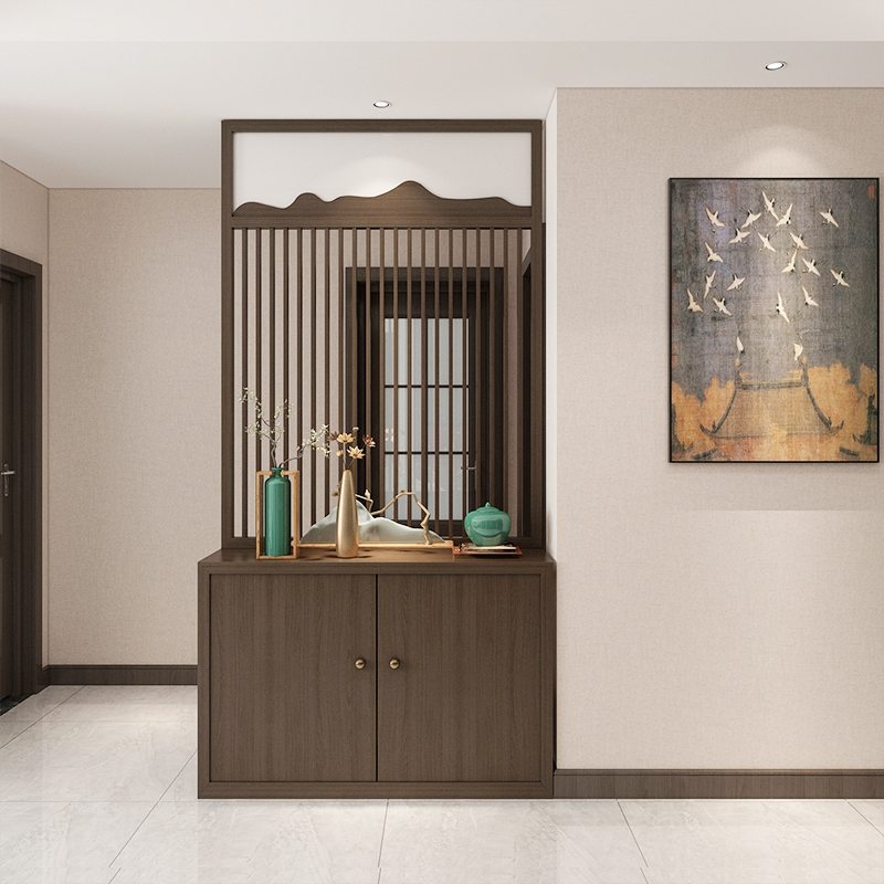 New Chinese partition screen wind room solid wood mask black walnut bar simple entry hollow log custom decoration wall