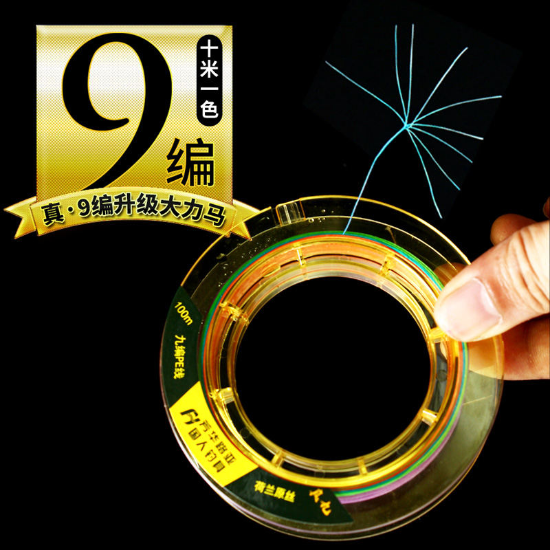 Vigorous horse 9 compiled PE line gluing to black special fish line main line subline Japan imports 100 m strong pull