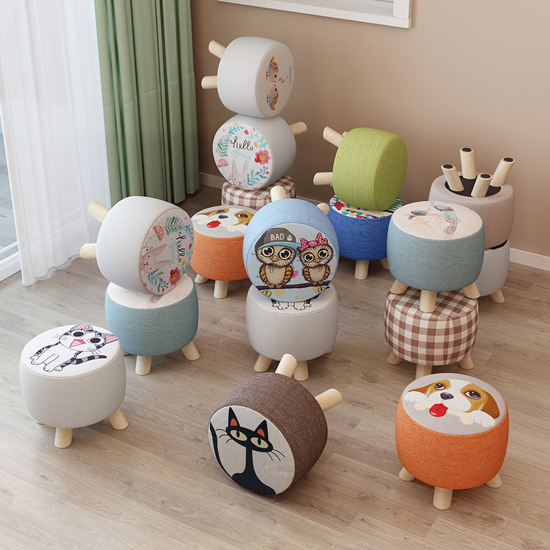 Small Stool Home Cloth Art Solid Wood Changing Shoes Stool Creative Round Stool Living-room Net Red Board Stool Sloth Sofa Tea Table Short Stool
