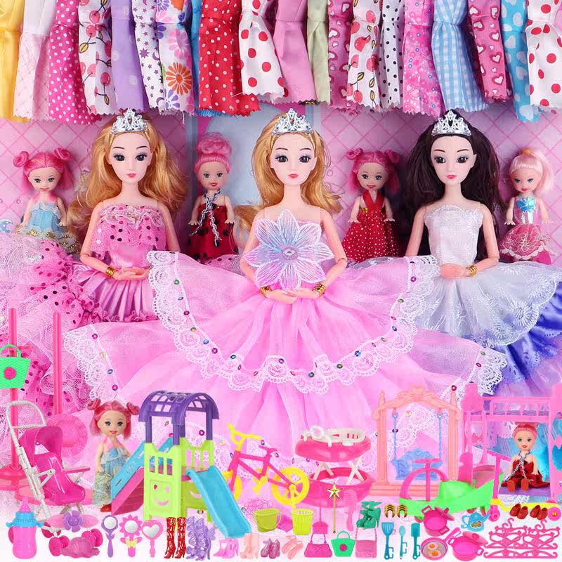Dress up doll set gift box princess wedding dress girl doll dress up family wine children's toy birthday