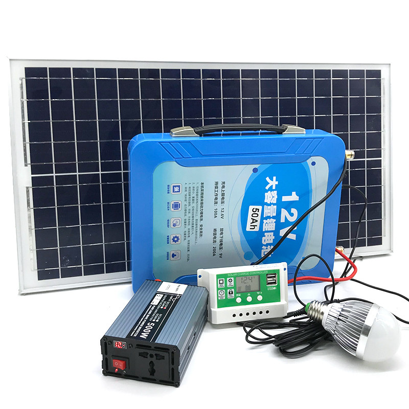 220V solar photovoltaic power generation system 12V lithium battery large capacity courtyard lamp household indoor emergency lighting