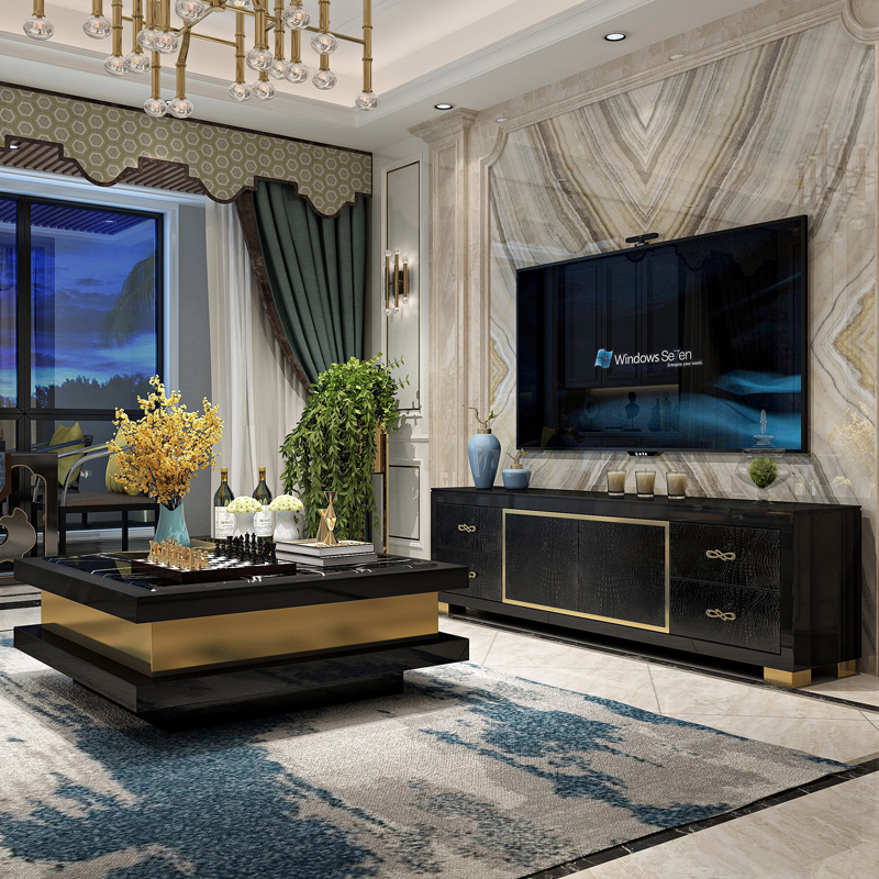 Marble coffee table TV cabinet combination square countertop postmodern minimalist Hong Kong light luxury style living room furniture - Taobao