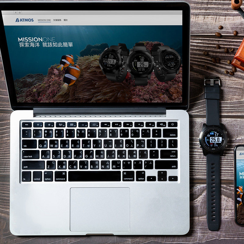 ATMOS MISSION ONE DIVING COMPUTER TABLE CHINESE INTERFACE CONNECTION APP CAN CHARGE WITH GPS