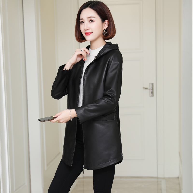 Henning genuine leather fur coat female medium long version 2022 new spring autumn loose Korean version Mama large size sheep leather windcoat jacket