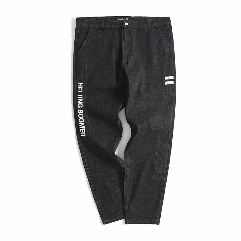 Black Stiffness Large Size Men's Pants Autumn Winter New Fat Pants Plus Fattening Up Easy straight drum Elastic Jeans
