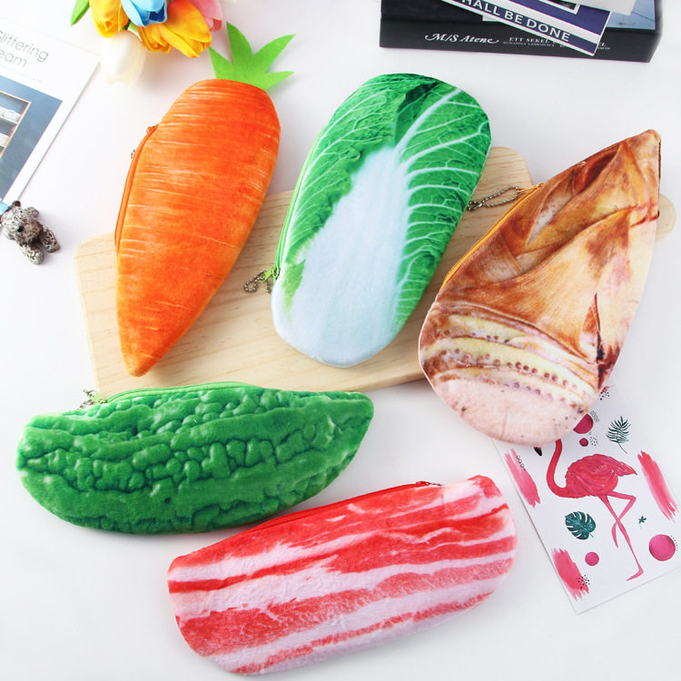 Pencil case stationery box Douyin net red student simulation vegetable chicken leg plush salted fish wallet pencil bag large-capacity bag