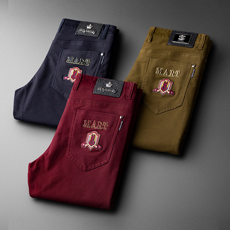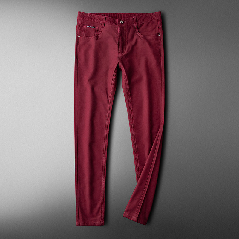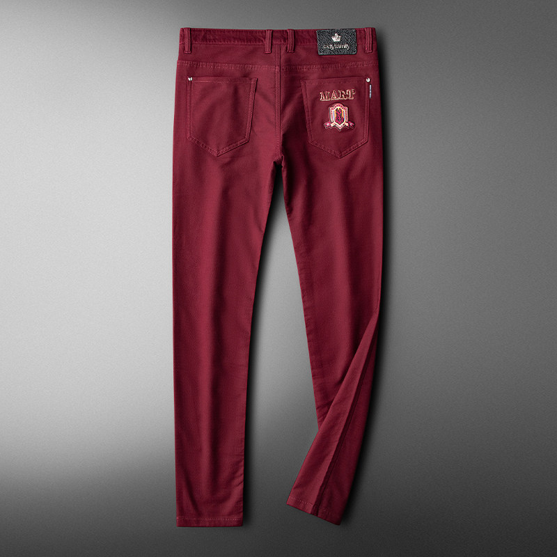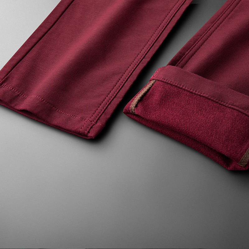Autumn winter wine red pants men practiced small foot elastic men quality embroidered business leisure pants men middle tide
