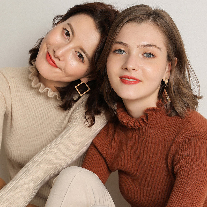 Autumn-winter semi-high collar jacket headcoat female outwear for the outside of the season lap knit body sweaters bottom-knitted sweatshirt with autumn dress blouses