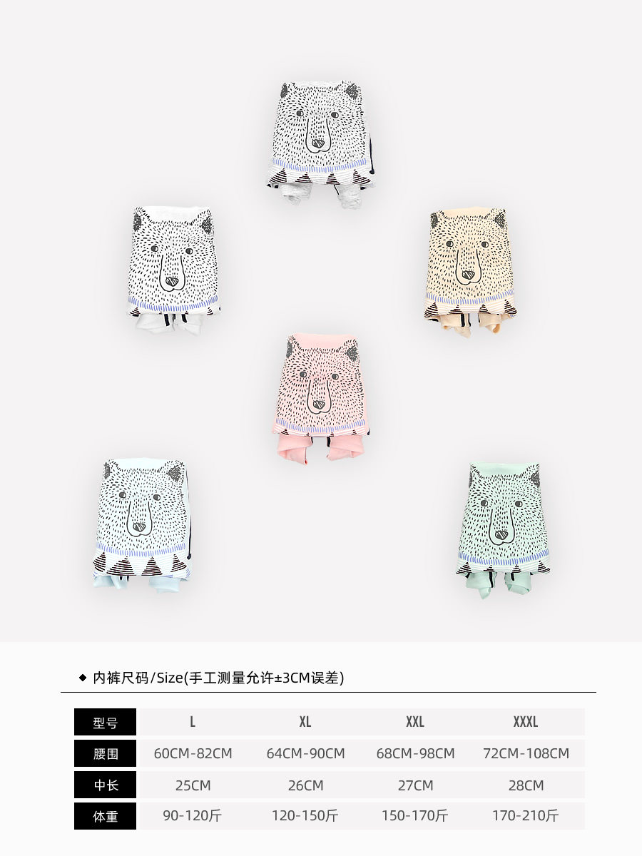 High Waist Large Size Underpants Woman No Marks Fat mm200 Catty Pure Cotton Day Ensemble Teenage Girl Cartoon Cute Big Fat Girl Fat Girl