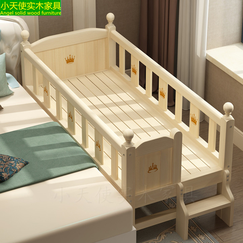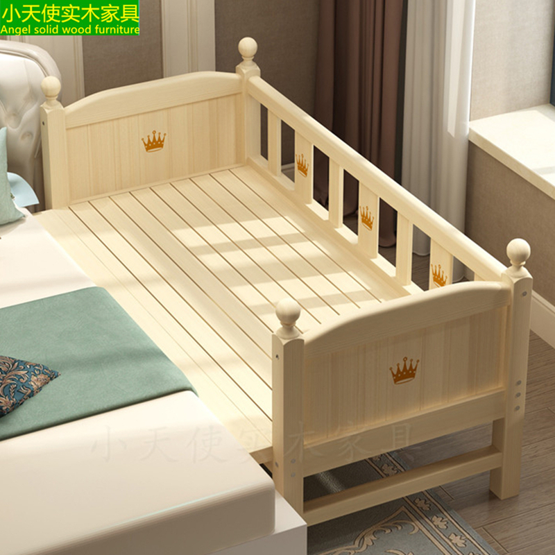 Solid wood paint-free children's splicing bed with guardrail branding Crib widened single bed for boys and girls extended bedside bed
