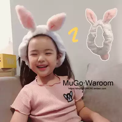 MuGo Korean cute soft rabbit ears wash face hair hair band standing ear adult mask hair band home parent-child hair band
