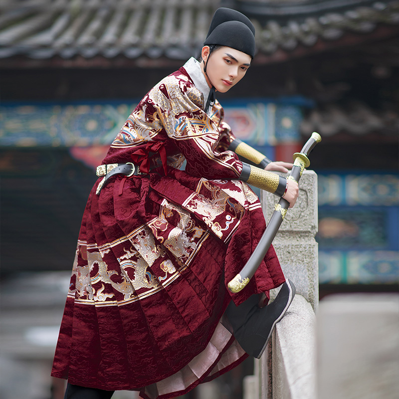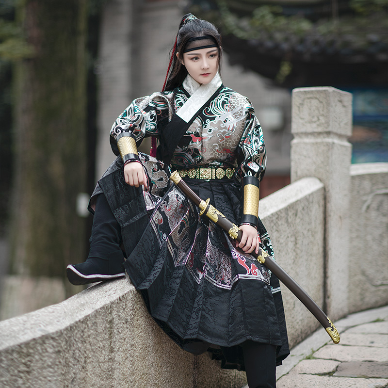 Such As Dream Neon Clothing Spring Hanfu Men And Women Guan Shan Moon) Two-woven golden icing clothes with custom made of black flying fish suit