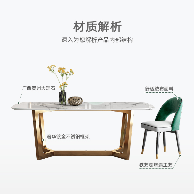 Light luxury marble dining table home small apartment table modern dining table and chair combination ins simple rectangular dining table