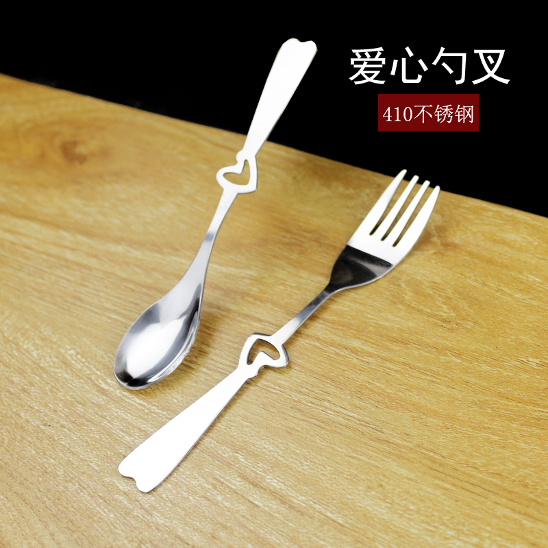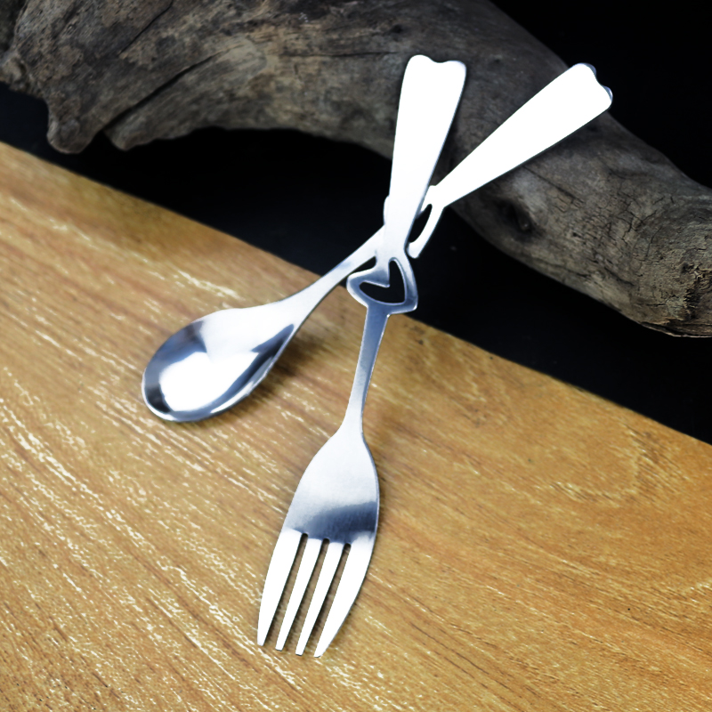 Heart-shaped spoon 2pcs Heart-shaped fork 2pcs Twist spoon 2pcs 304 Coffee spoon 2pcs