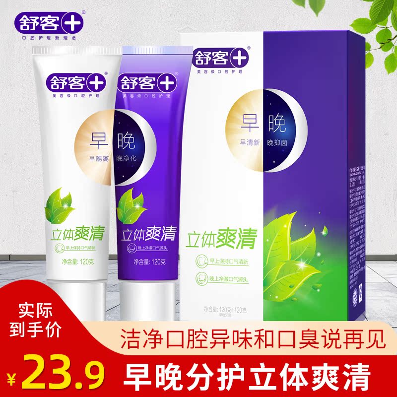 Shuke morning and evening toothpaste Three-dimensional refreshing clear whitening to yellow to remove teeth stains Fresh breath Adult family pack students