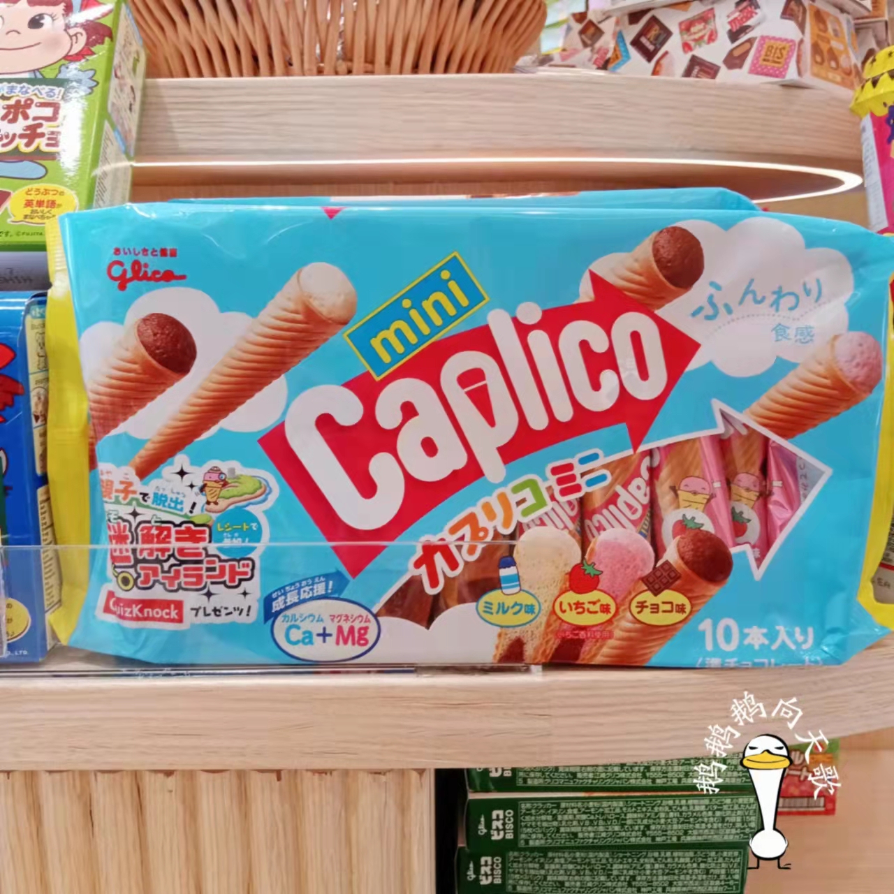 Japan's native Glico Glico ice cream cone egg roll shape chocolate strawberry vanilla sandwich biscuits