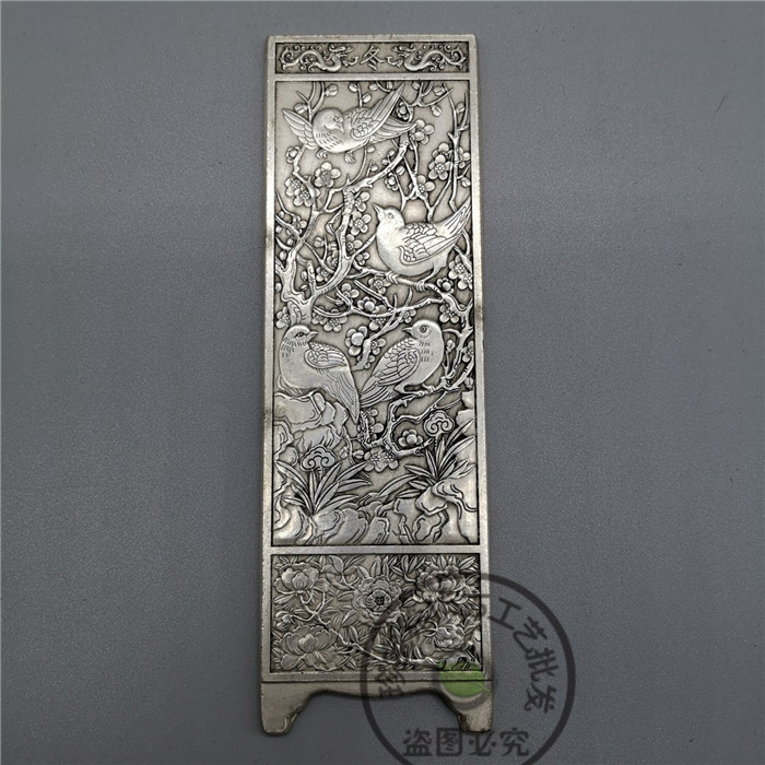 Antique Collection Bronze Craft Gift Ornament White Copper Gilt Silver Metal Interstitial Screen Spring, Summer, Autumn and Winter Screen Ornament Home Decoration