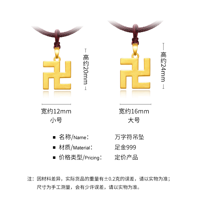 Pure gold swastika pendant small size about 1 4g (gift default black neck rope) Pure gold swastika pendant large size about 2 2g (gift default black neck rope)