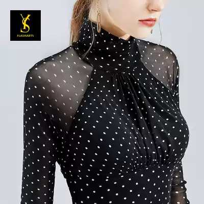 Latin dance practice clothing women's coat long sleeve high collar national standard dance clothing new fashionable modern dance clothing autumn wave point