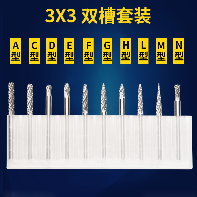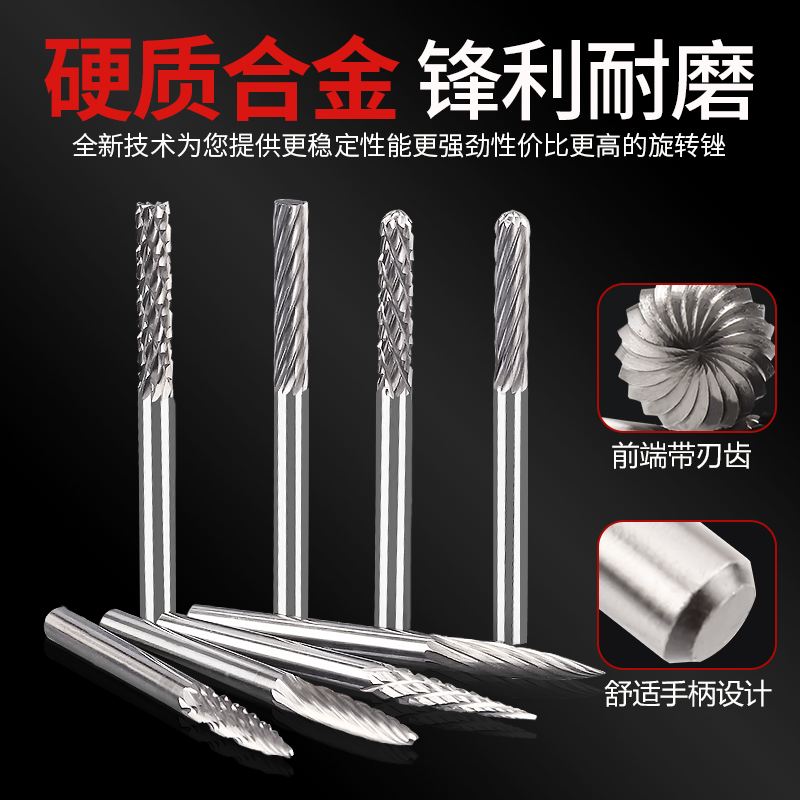 Carbide rotary file 3mm tungsten steel milling head electric straight grinding machine metal grinding head woodworking engraving drill bit