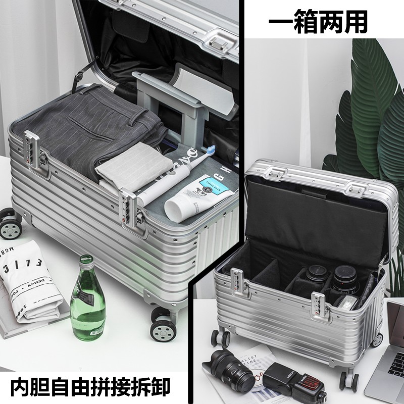 All-aluminum-magnesium alloy shockproof silent photography horizontal version of the captain's box 18-inch metal luggage trolley case male universal wheel